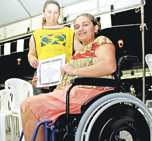 A aposentada Alaíde Aquino Pereira, 51, também foi beneficiada e parabenizou a ação da instituição religiosa. No entanto, lamentou o fato de existir muitas pessoas esperando há tanto tempo. "Eu, por exemplo, estava aguardando desde 2007. A doação da Igreja foi muito importante, mas a cadeira de rodas é um direito nosso que deve ser garantido pelos governantes", diz a aposentada.